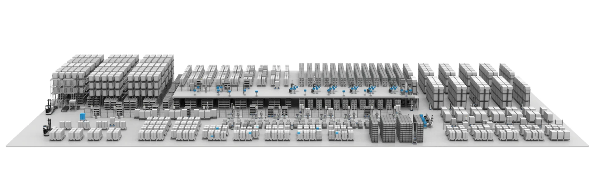 Deze flexibele oplossing voor hoge opslag maakt gebruik van AMR’s om bakken of dozen efficiënt rechtstreeks van de opslag in het magazijn met hoge dichtheid naar de magazijnoperators te transporteren. Deze methode stroomlijnt het orderverzamelproces, waardoor de efficiëntie en nauwkeurigheid bij het afhandelen van orders aanzienlijk toenemen.
